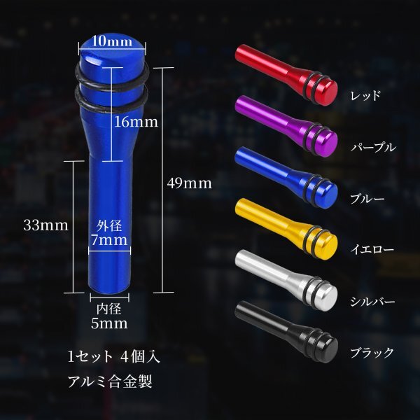 【特徴】 アルミニウム合金製のドアロックピンは、軽量で耐久性があり、長い耐用年数を持ちます。これにより、愛車のドアをしっかりとロックし、安全性を向上させます。