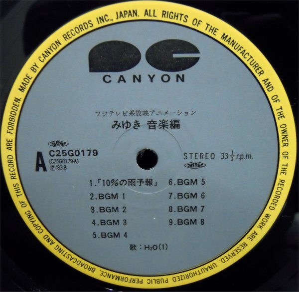 ・フジテレビ系アニメ、『 みゆき 音楽編 』(BGM集)、LPレコードです。中古 |
