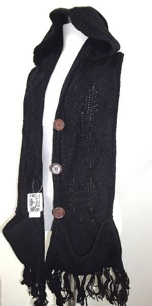 新品 SELF+SERVICE セルフサービス 定価¥2980 フード付き マフラー 2ウェイ ストール ニット ミトン ポケット付 未使用 タグ付 黒 收藏