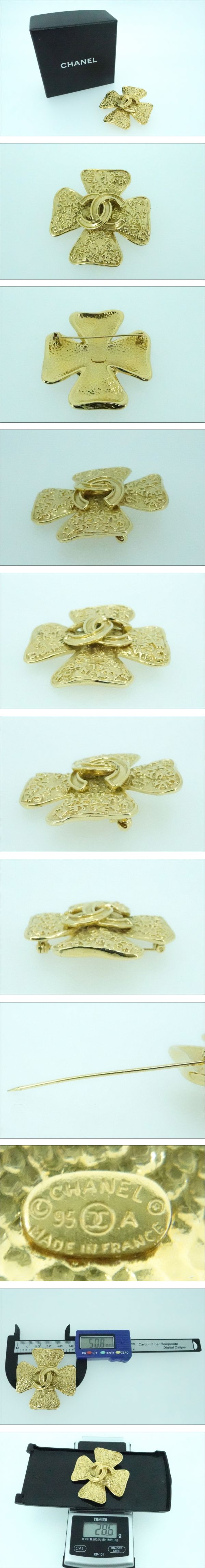 CHANEL シャネル ブローチ クローバ― 95A ゴールド 箱付 アクセサリー Accessory ブランド ヴィンテージ アンティーク レトロ 收藏