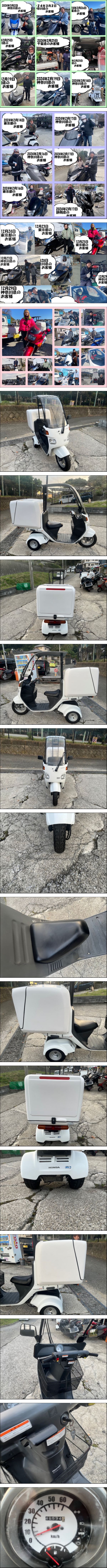 神奈川県横須賀市からの出品です現地クレジットカード決済対応しています(Visa/Mastercard)半額現金、半額クレカなどでも対応できます。もちろん全額クレカでも大丈夫ですクレカは4%の手数料頂きます。 利用規約は必ずお読みください こちらにあります 商品説明は最後までお読みください 必ず動画も確認してください。 他に修理したほうが、いいとこありますか?交換必要箇所教えてくださいなど良く質問いただきます、不具合確認していれば治してから出品しています。もしくは動画でご説明しています 出品から陸送までにコンディションが変わる車両もあります。 その時点で不具合発覚しましたら治してから陸送出しています。 陸送に出す前にも確認しております。不具合なく乗れるように努めています。 しかし年間1500台販売しております。こんなタイミングで!!予想もつかない消耗品が壊れることもあります。中古である以上値段の高い中古を買ってもありうることです。 消耗品は壊れたら交換すればいいだけです。中古です消耗品は必ず出ます。 それで廃車だの言う方は新車買ってください。 お近くの方は当店にお持ちください。遠方の方は症状を、お電話くださいアドバイスいたします。 質問、現車確認等は予約はお電話下さ。営業時間外は電話は事務所ですので出られません 残業してるときは出られる時もありますが定休日は電話出れません 090-3336-6630 営業時間 10時~17時 お昼休み 12時~13時 定休日 火曜日 第4水曜日 夏季休暇8/11-8/15 沖縄本島送料激安、約35000円ジャイロ3輪屋根付きバイク50000円から 新規の方評価20以下の方は2時間以内に取引情報の送信いただけませんと削除いたします お越しの際は 神奈川県横須賀市武5丁目9 武五丁目第三公園を目的地に来てください 公園沿いにバイク沢山並べていますので直ぐに解ります 090-3336-6630 外出することもありますので 来られる時間解りましたら ご連絡お願いします お引き取り、現車確認は16時までとなります。 営業時間 10時~17時 お昼休み 12時~13時 定休日 火曜日 第4水曜日 お引き取り、現車確認は16時までとなります。 現車確認は予約制となっております。必ずお電話で予約お願いいたします バイカーズクサマ 担当クサマ お電話受付10時~17時 定休日、営業時間外、お昼休みは電話に出られません。事務所に電話おいてますので。 090-3336-6630 動画で解りやすく安心してネットでバイクが買えるよう 努力しています、必ず動画で現状ご確認下さい 以外でも売っていますので取り消す場合が多いいです 気に入ったものあれば早めに落札下さい 僅差で現車確認された方に売れてしまった時は落札されましても お譲りできない場合もございますご了承ください。 安く出品していますが特に訳アリとかではありません 大量に販売していますので激安価格が実現できています 転売される方沢山いますが転売先から問い合わせ頂くことが増えてます 転売も構いませんが責任を持ってお願い致します 評価に関して 最近自分勝手な評価される方がいます、現状販売にもかかわらず新車を買ったかのような クレームを言ってきたり、この値段で新車クオリティー求めてる呆れた方が増えてます 店だから何言ってもいいやくらいの感覚であることない事書かれたりしています 来店された方からは良く、 このクオリティーこの値段で文句言うやついるの?などとよく言われます。 大事に乗りますなど励まされるお言葉も多数いただきます 喜んで買って頂く方ほとんどですが、一部の理解力のない方がいますので 評価頂いた方には評価いたしますが必ず同じ評価で返します 残念です。 自賠責保険も取り扱っています。 登録時コンビニに入れに行ったりするより楽です 登録書類到着したら。登録するだけ乗り出せます どこで入っても値段は同じですので お申し付けください登録書類と一緒に送ることもできるので 手間が省けて便利ですよ。 敷地内でテスト走行を行ってから出品しています 最低限、走る、曲がる、止まる、故障ないよう長く乗っていただけるよう出品していますが 全てをチェックしてる訳ではありません予期しないトラブルもございます 公道、長時間の走行テストはしていません自走で帰らる方はトラブルもあるかもしれません 自己責任でお願いいたします。故障の際お電話でクレーム言われても一切対応いたしません 自己責任で自走引き取りしてるわけですから。 例外として交換部品在庫切らせている時はそのまま格安で出品もしています お時間をいただければ有料ですが部品交換も致します またお客様の方で気になる部品あればブレーキパッドやタイヤなど 有料ですが交換してからお渡しも可能です 外装、タイヤ、距離など画像、動画でご確認ください 中古ですので誰が何時OIL交換したか解りません長く乗れるよう乗り出し前は最低限おOIL交換してからお乗りください 希望があればエンジンオイル交換2200円より承ります 自走引き取りの場合は近い遠いに関わ