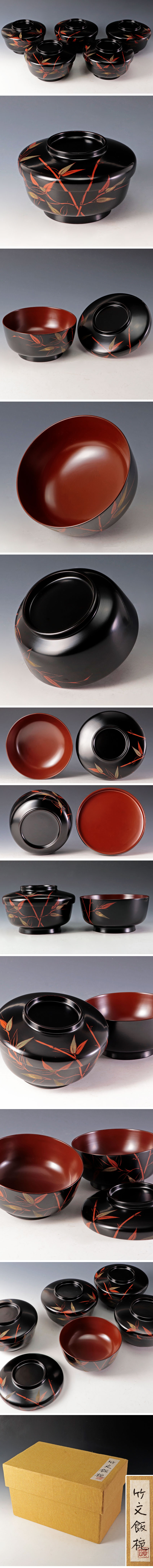 【古美味】根本曠子 竹文飯椀 五客 茶道具 保証品 |