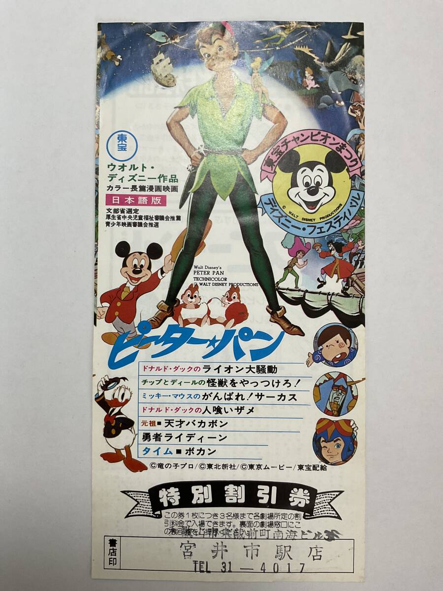 【当時モノ】映画割引券 東宝チャンピオンまつり ピーターパン/タイムボカン/勇者ライディーン/元祖天才バカボン/ディズニー/ミッキー 收藏