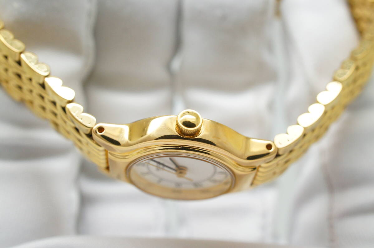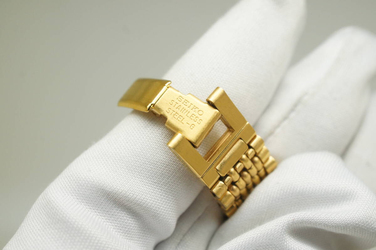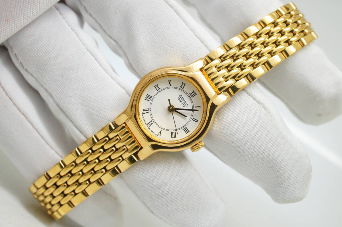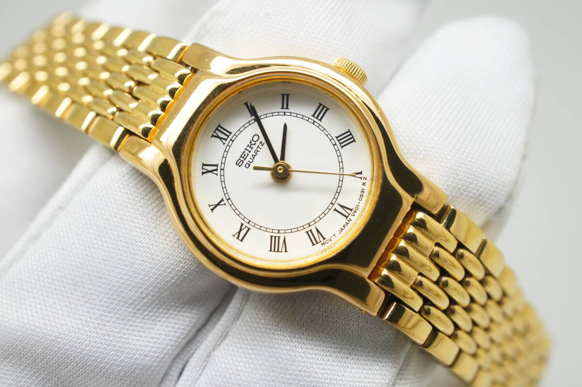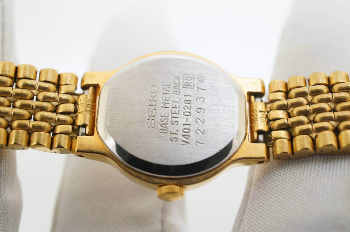 J94●作動良好 SEIKO セイコー V401-0281 白文字盤 ラウンドケース型 ローマン数字 レディース腕時計 ゴールド金 お洒落 クォーツ 收藏