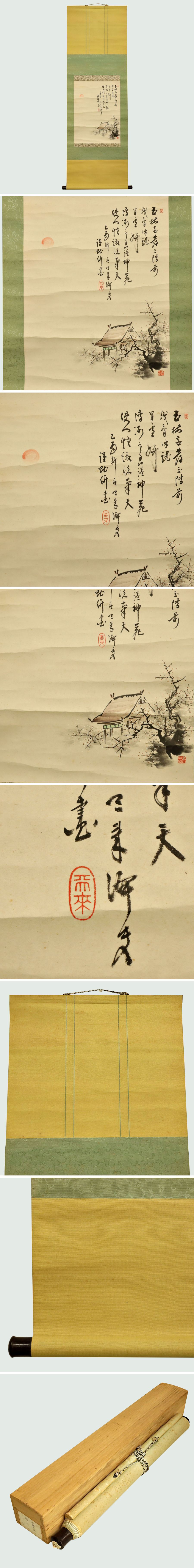 真作保証 内藤天来 梅山水図 紙本 箱 備後 掛軸 書画 骨董品 古美術品 1451sbzN 收藏