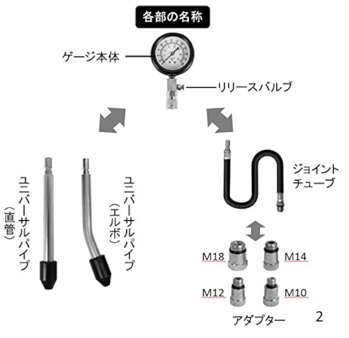 ガソリン エンジン 用 コンプレッション ゲージ エンジンの基礎体力が分かる 圧縮圧力を測定 圧力計 テスター 車 バイク 用 收藏