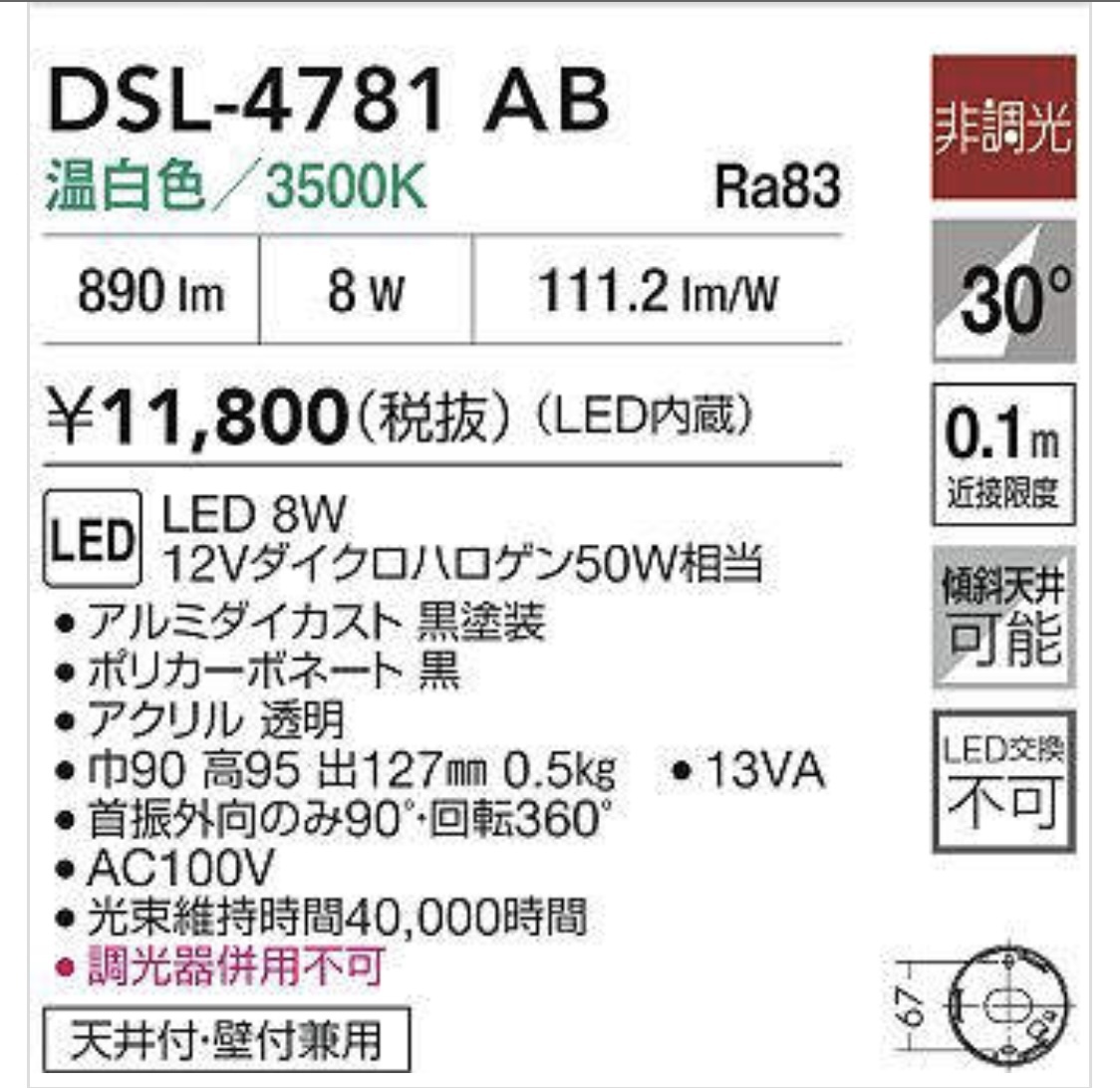 DAIKO 大光電機 DSL-4781AB 温白色 電気 照明 キッチン 店舗 事務所 DIY 最安値 激安 格安 安い 收藏