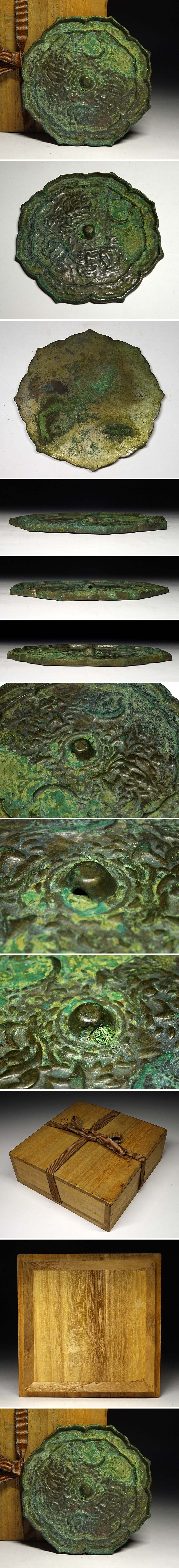 緑屋t■ 中国古玩 古銅 古鏡 漢鏡 八稜鏡 木箱 唐物 時代物 古美術品 i9/10-6253/30-5#60 收藏