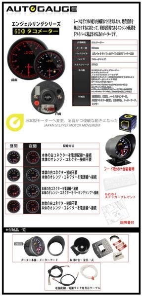オートゲージ タコメーター バキューム計 60Φ 2連メーター 458 2点セット 日本製モーター エンジェルリング ワーニング 60mm 收藏