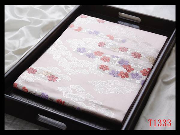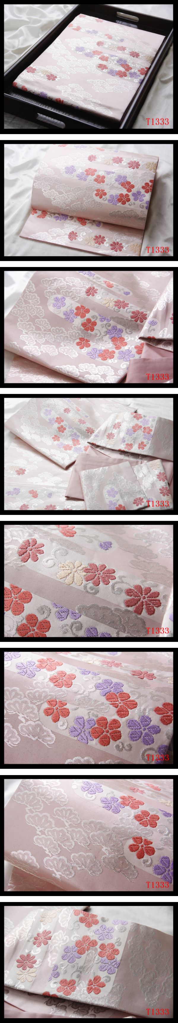 蔵【T1333】厳選逸品 唐草花紋 淡紅藤色地 気品豊かに 正絹高級美術名古屋帯 ◇検簪着物袋帯和装小物帯締め 收藏
