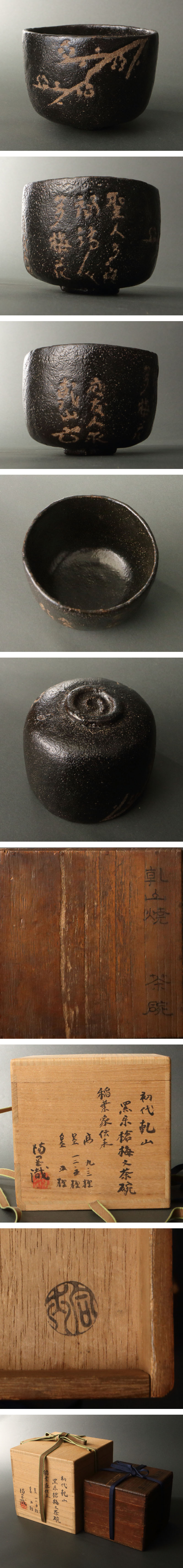 委託HK◇初代尾形乾山 乾山焼黒楽槍梅図茶碗 満岡忠成識 稲葉家伝来(茶道具 京焼 楽焼 乾山焼 黒茶碗 楽茶碗 冬 初春 茶事 茶の湯 茶席) 收藏