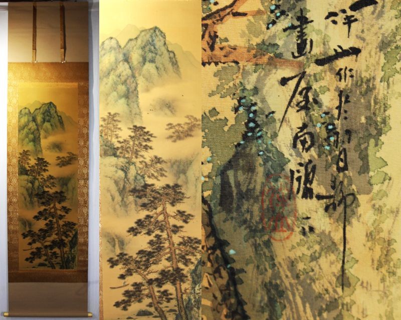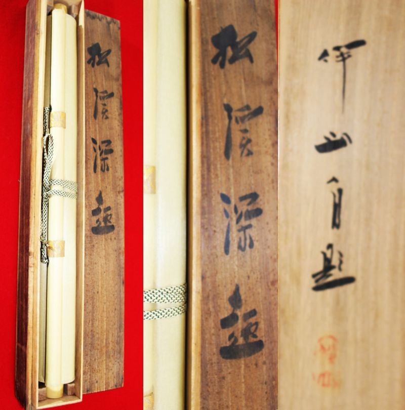 《真作》★八木 伴山【松渓深趣】*共箱.古い掛軸*師 矢野橋村*文展*帝展*山水得意*通年掛.山水画*松林*大阪.物故*[桃] 收藏