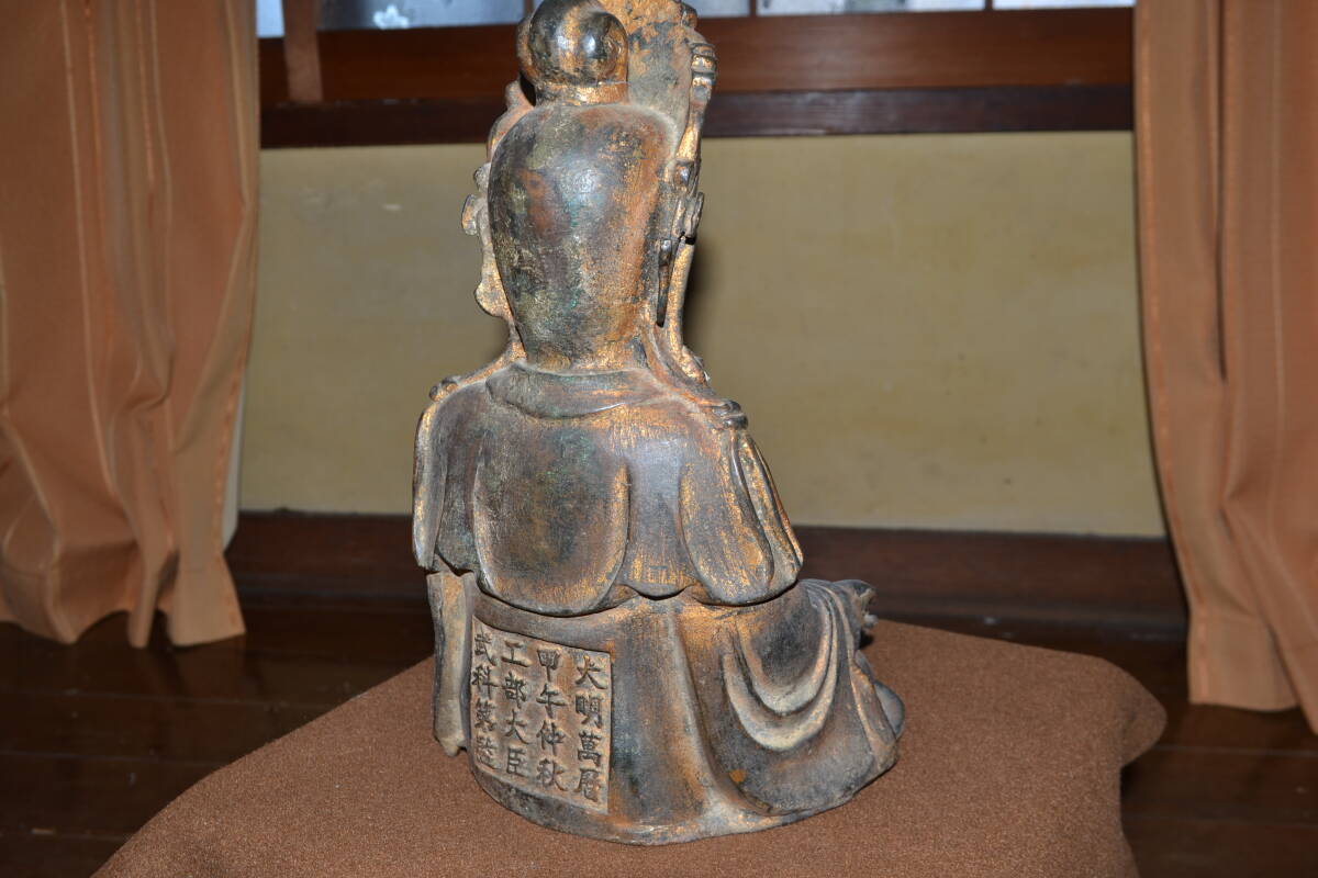 中国工芸美術 大明萬暦年銘鍍金観音菩薩座像 有難い容貌 どっしり 製造責任部署名明示 珍品 優品 收藏