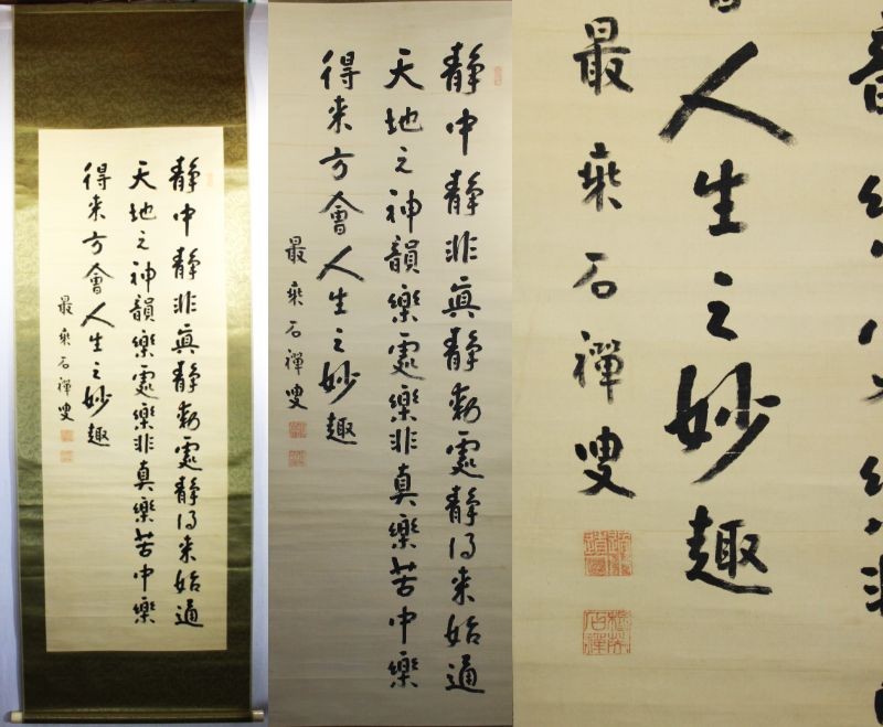 《真作》★新井 石禅【静中静非真静~】菜根譚.三行書.掛軸*曹洞宗総持寺独住5世*11代管長*最乗寺*駒沢大学教授*福島.新潟.物故*[桃] 收藏
