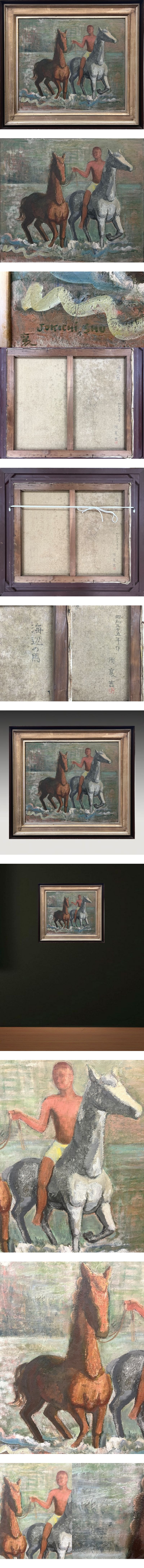 【FCP】 真作保証 周襄吉 油彩画20号 「海辺の馬」 1960年作 大型作品 モダン・アート協会創立に参加 k 收藏
