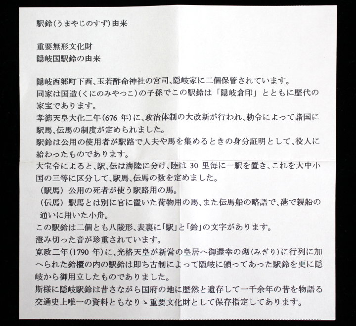 隠岐国 駅鈴 驛(うまやじ)鈴 重要文化財 驛鈴 陶器製駅鈴 出雲市の萬祥山窯元製作 隠岐西郷町 杉廼舎 共箱 布志名焼 民藝 收藏