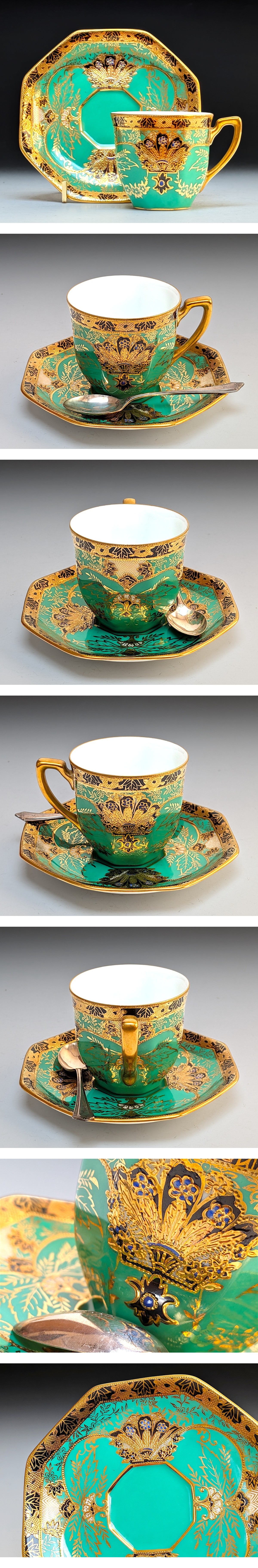 | 【純銀スプーン付き】オールドノリタケ 金盛 アールデコ期 カップ&ソーサー | ||||