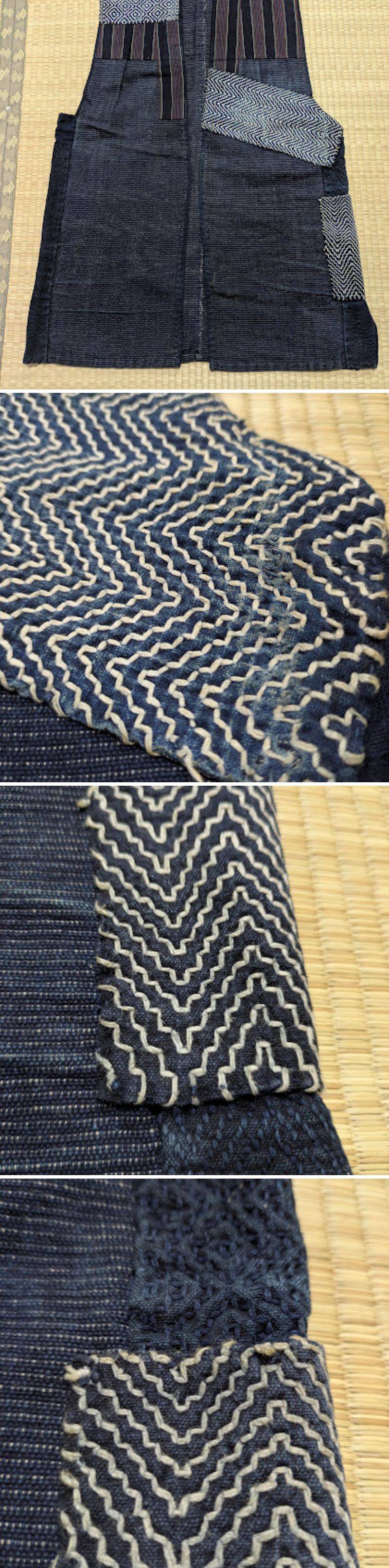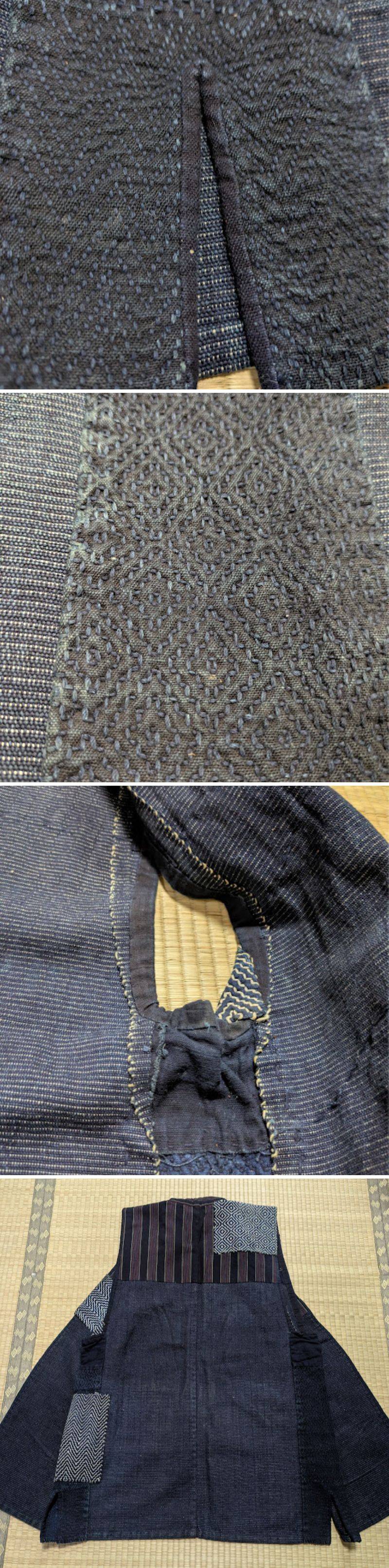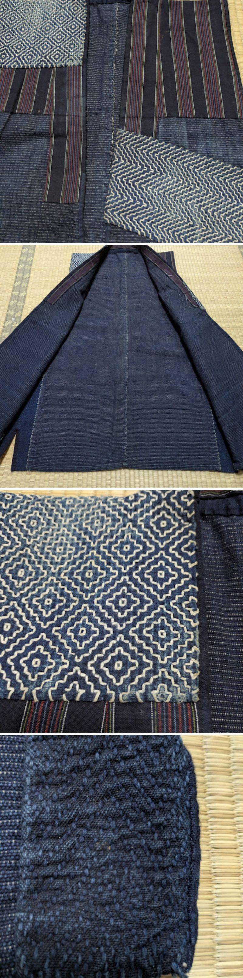 時代物◆庄内刺し子◆裂織 野良着◆裂き織り◆藍染め手織り木綿◆古布◆土蔵に眠っていました。昔の裂き織りの野良着です。藍木綿の裂き織りの側に2種類の刺し子が藍の糸で施されています。その上に白い糸で刺し子が2種類施されている布地が付いていてとても美しいです。経年による薄汚れ擦れ等ある部分あり。(画像参照) 時代物ですが、状態は良いと思います。◆サイズ・・着丈約80,5cm 身幅約55,5cm。このまま着用できますが、リメイクや材料としてもどうぞ。時代物ということをご理解頂ける方宜しくお願いいたします◆xvpbvx |