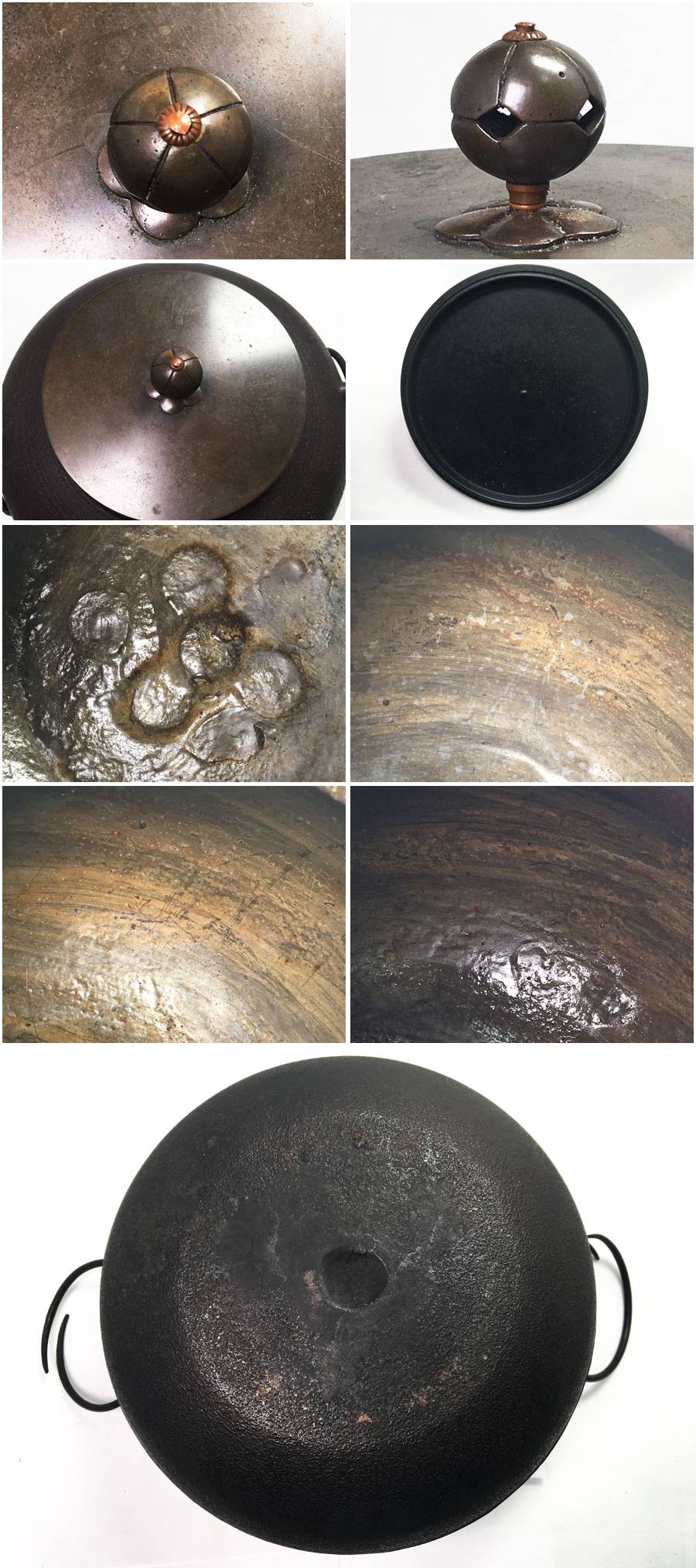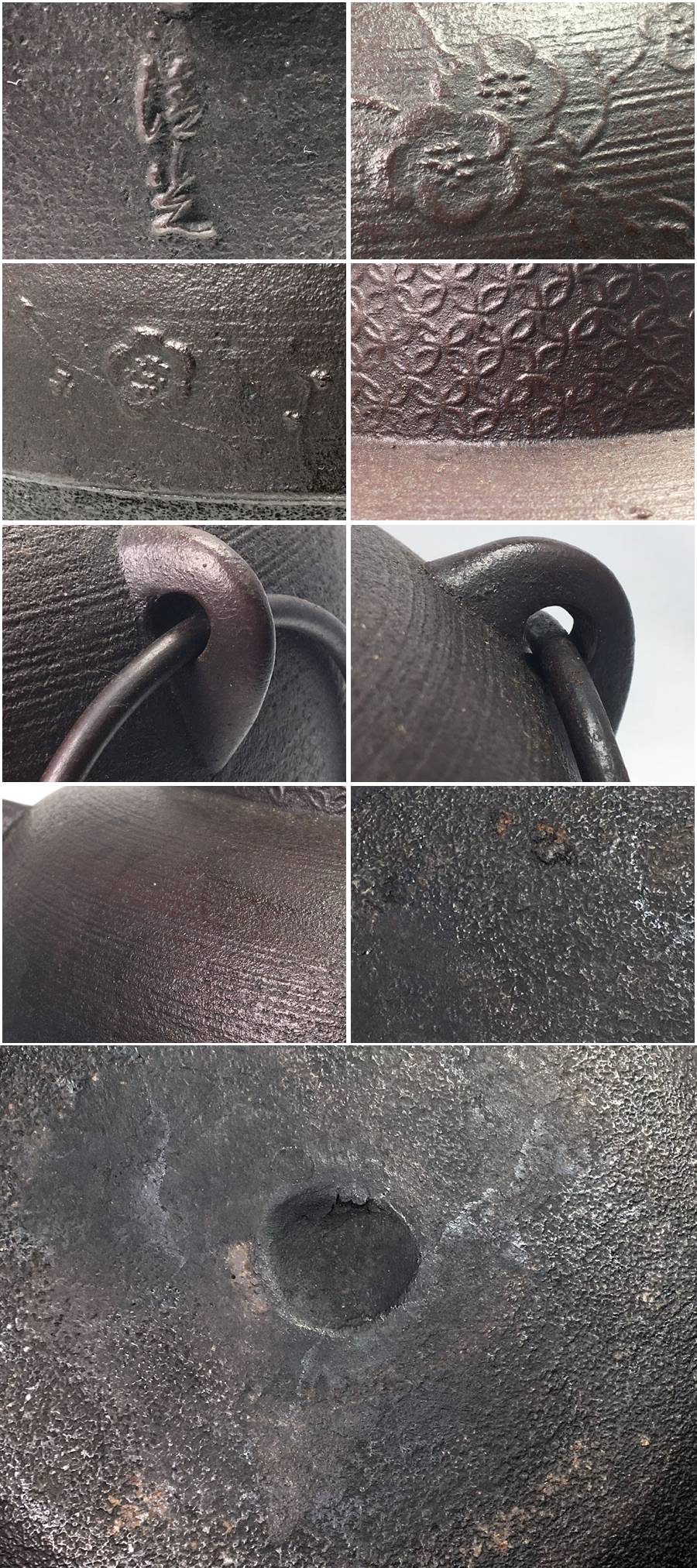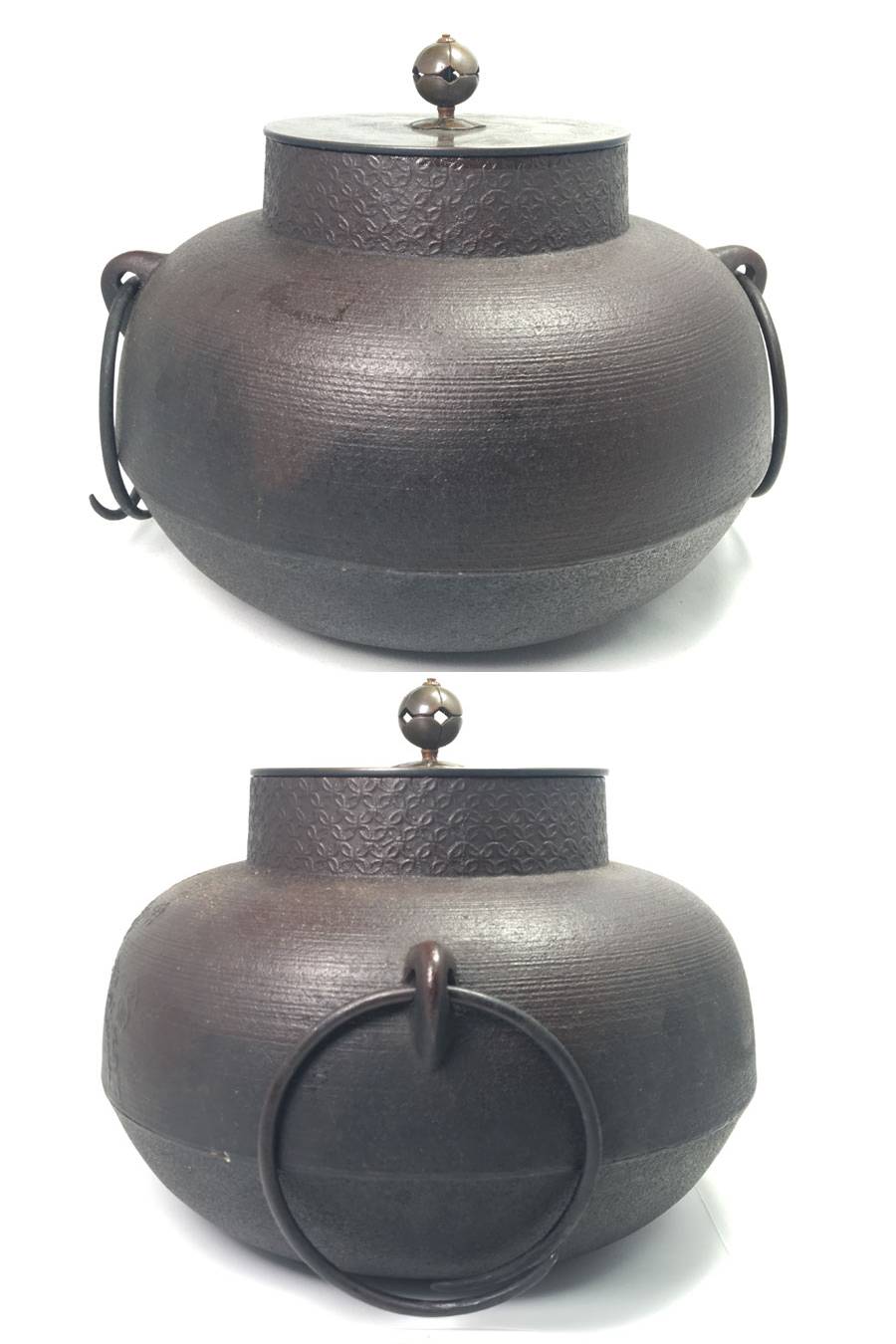 釜師 佐藤清光 清光作 蝋梅 梅地文 炉釜 茶釜 風炉釜 鉄製 銅蓋 釜 鐶 約4.2kg 水漏無 茶道具 金属工芸 收藏