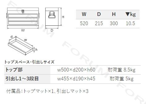 ●チェストの上面には、KTCロゴがエンボス加工で施されています。
