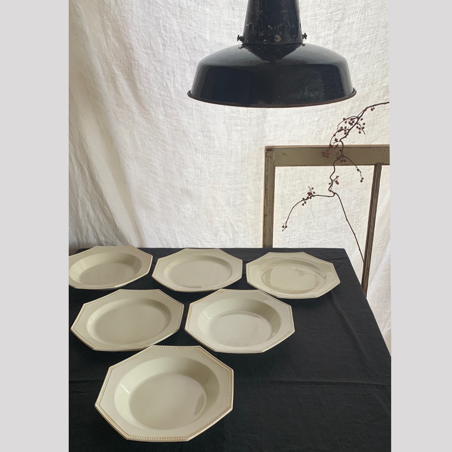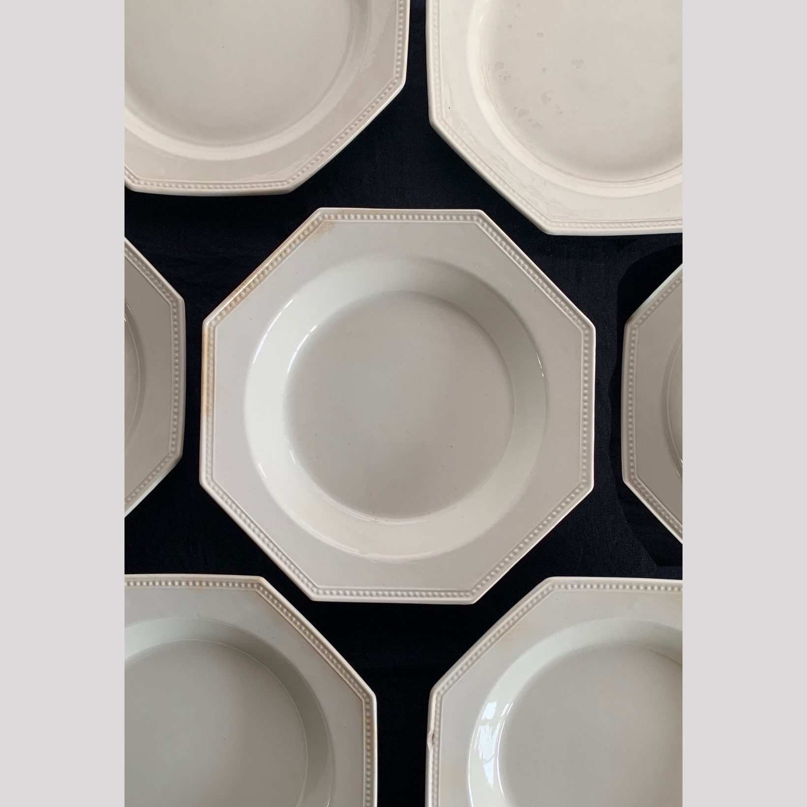 フランス 19世紀 Montereau スープ プレート モントロー オクトゴナル パール クレイユ Creil ディナー 陶器 皿 骨董 アンティーク 4 收藏