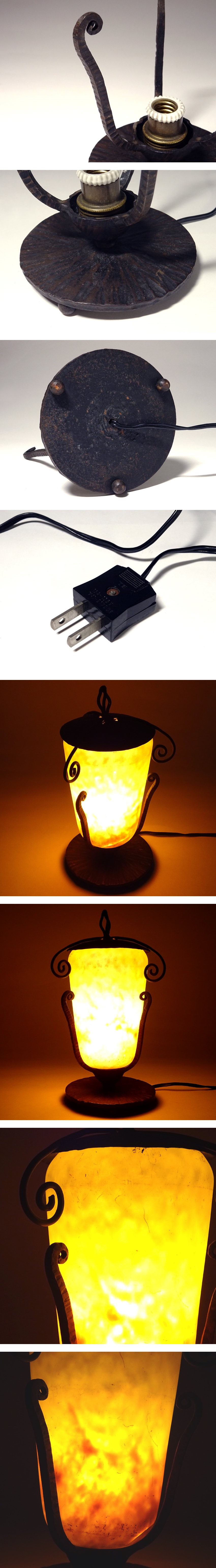 慶應◆20世紀初頭頃【Daum Nancy ドーム・ナンシー(ドーム兄弟)】作 アール・ヌーヴォー ヴィトリフィカシオン テーブルランプ 鉄地金具 收藏