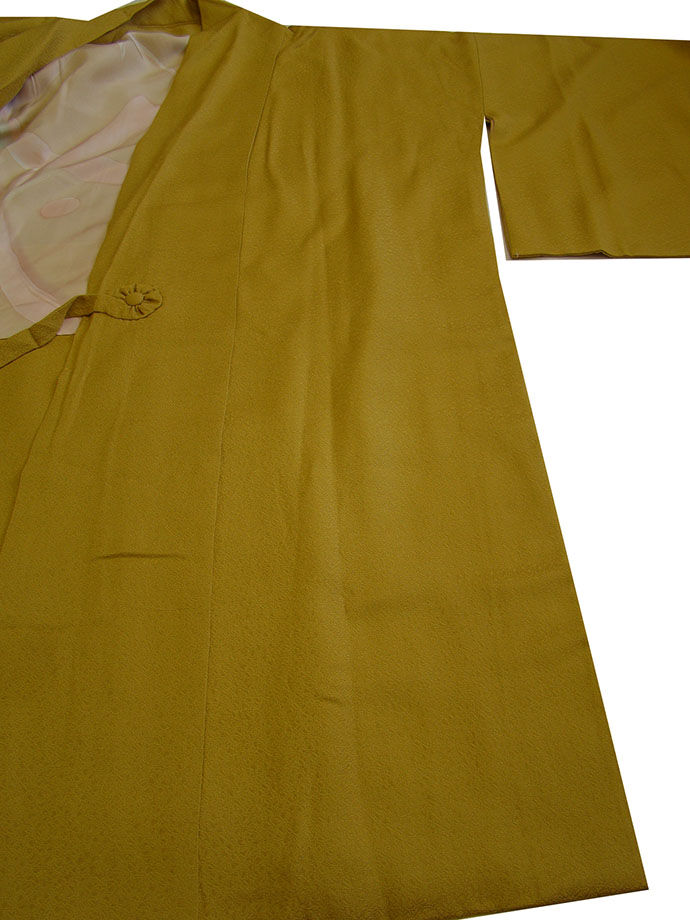※縮緬地フクレ織の素敵な道中着です。 ワンランク上のコートをはおり、周りに差をつけお洒落心を擽る趣向を凝らした完好なお品です。 いつの時期も大事な帯や着物を守る為にも、外出の折にはコートは身に付けたいものです。 40代~70代迄幅広く着用出来出来ます。 身長162cm~168cmの貴女に最適!! |