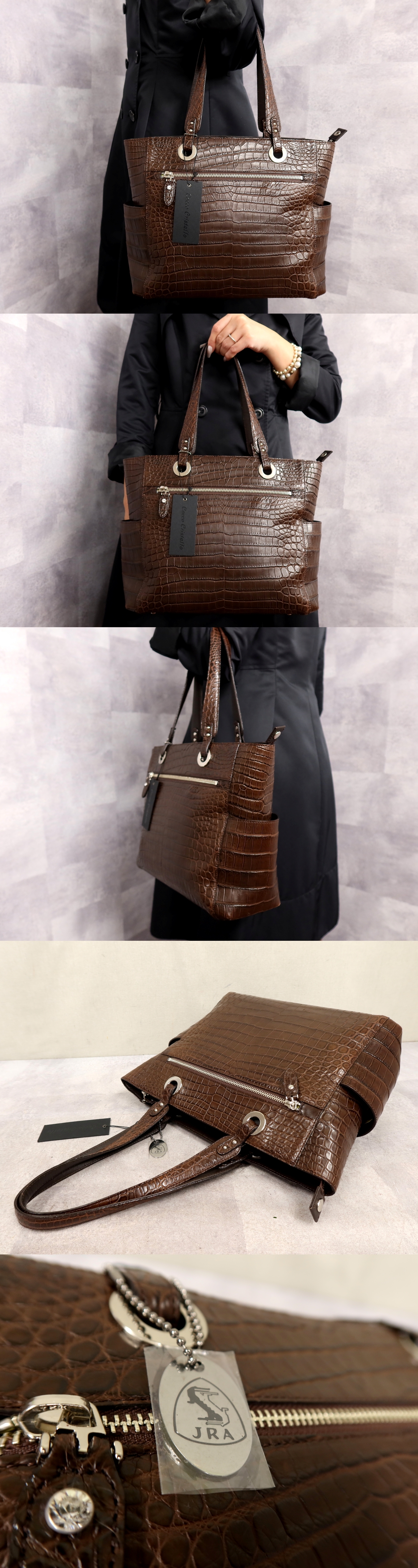●超美品●iii sanpo 三宝●クロコダイル 本 ワニ 革●トート バッグ●ダークブラウン●シルバー金具●B5 収納●書類 かばん●Js62814 收藏