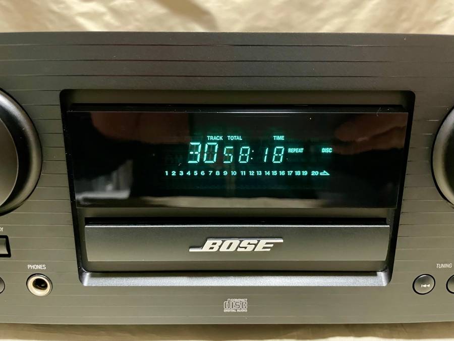 ★★フロントパネル傷無く凄く綺麗です。天板に薄い線擦り傷があります。サイドパネルも小傷はありますが目立つ傷は無く凄く綺麗です。また液晶表示も凄く明るく動作も良好で、お薦めの逸品です。BOSE独特の艶消しブラックがとても綺麗です(画像参照)★また、アンプ部の電解コンデンサーを新品に交換しておりますので、ノイズの心配もありません。出品商品のように傷が無く良い状態の個体は貴重ですので、この機会にいかがでしょうか。