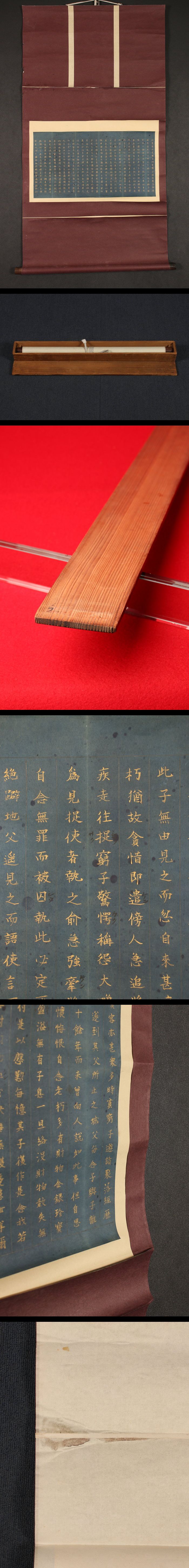 【伝来】am5219 古写経断簡 法華経 仏教美術 経典 中国 敦煌 紺紙金泥 收藏
