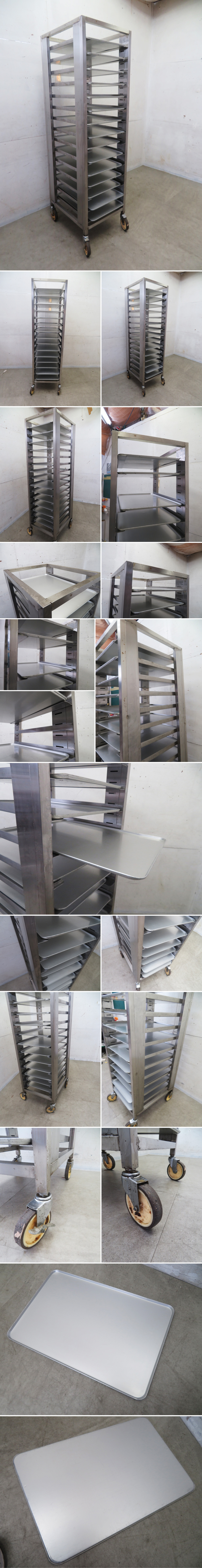 ■P831■インダストリアル■トレーワゴン/シェルフ■キャスター付き■ステンレス×アルミトレー■厨房器具■店舗什器■15段■高さ調整可能 收藏