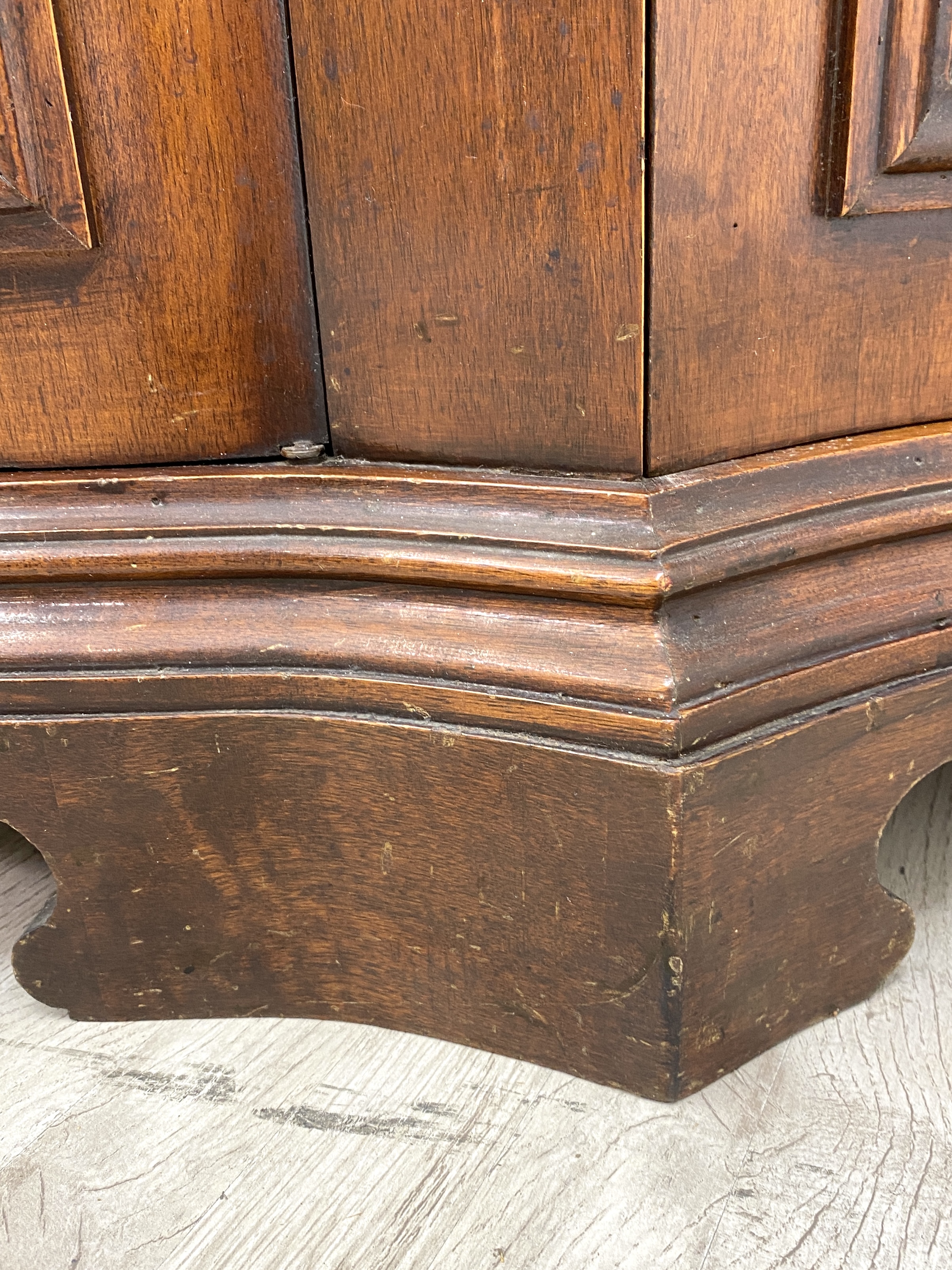 ■品名 アンティーク サイドボード ■サイズ 全体:約 幅/1240mm × 奥行/440mm × 高さ/920mm 棚板(中央):約 幅/410mm × 奥行/300mm 棚板(左右):約 幅/325mm × 奥行/260mm ■材質 天然木、鋳物金具 ■生産国 イタリア ■備考 ・棚板は取り外し不可(破損の恐れがあるため) ・鍵1本付属