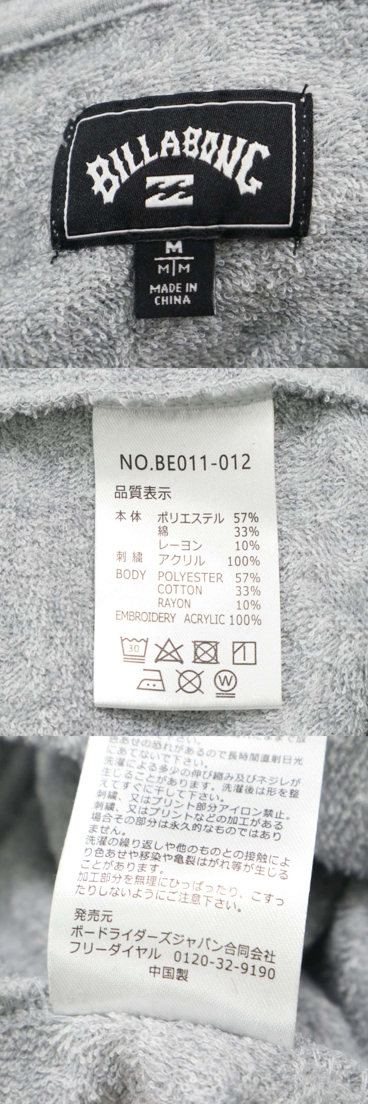 BILLABONG ビラボン 通年 ロゴ刺繍★ ナンバリング パイル プルオーバー パーカー Sz.M メンズ グレー 收藏