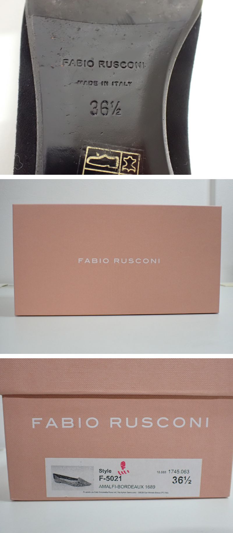 20PIU/8G◆FABIO RUSCONI ファビオルスコーニ ブラックスウェード ローヒール ポインテッドトウパンプス 36.5サイズ 中古品◆ 收藏