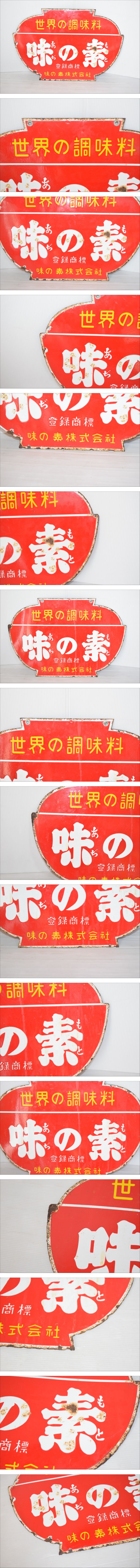 M 味の素株式会社「世界の調味料 味の素」ホーロー看板 約45×30cm 両面 ブリキ看板 昭和レトロ 当時物 アンティーク 收藏