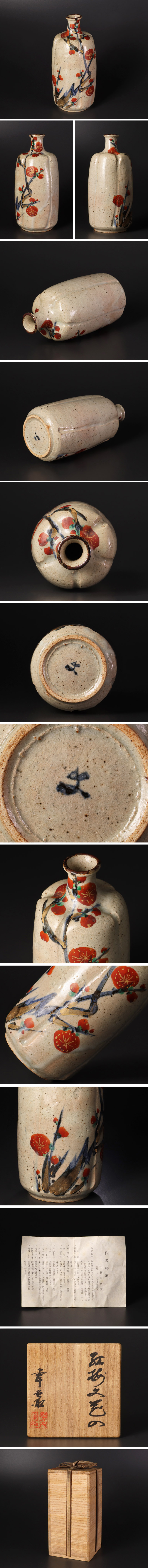 上から見ると梅花の意匠を思わせ、胴には梅が大胆に描かれています。造形と絵付が自然に溶け合い、愛らしさの中に品を湛えた、日本の季節感を感じる花入です。 ★商品は五代加藤幸兵衛の作品である事を保証致します。 |