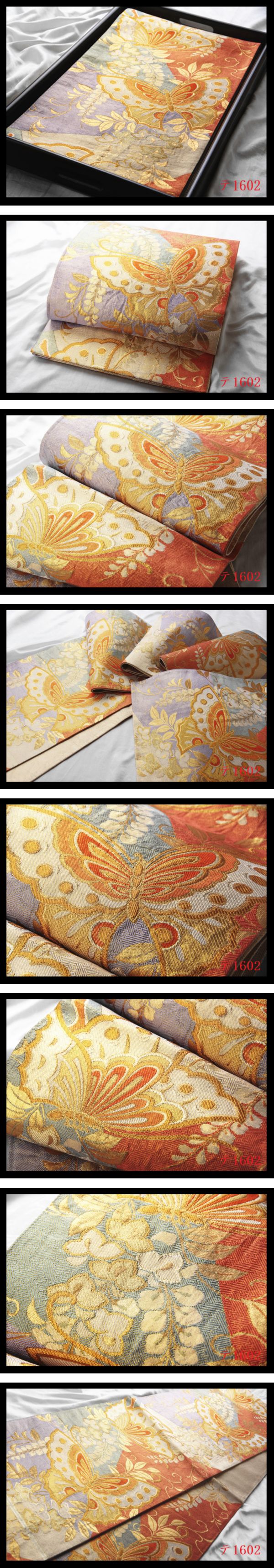 蔵【テ1602】厳選逸品 振袖可 花蝶古典紋 華やぎの品格 正絹純金糸六通高級美術袋帯 ◇検◇簪着物名古屋帯和装小物帯締め 收藏