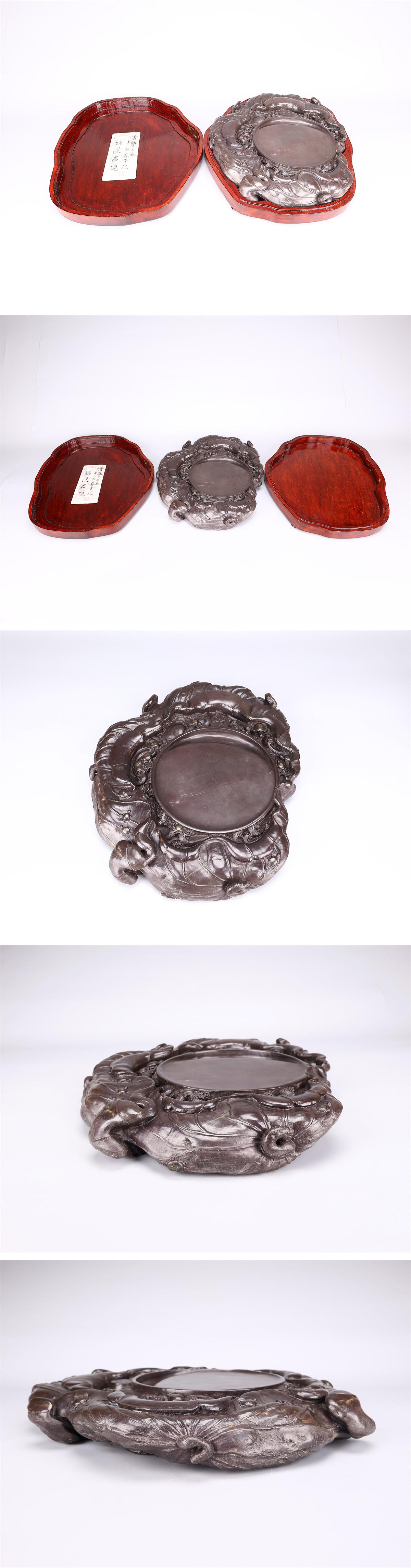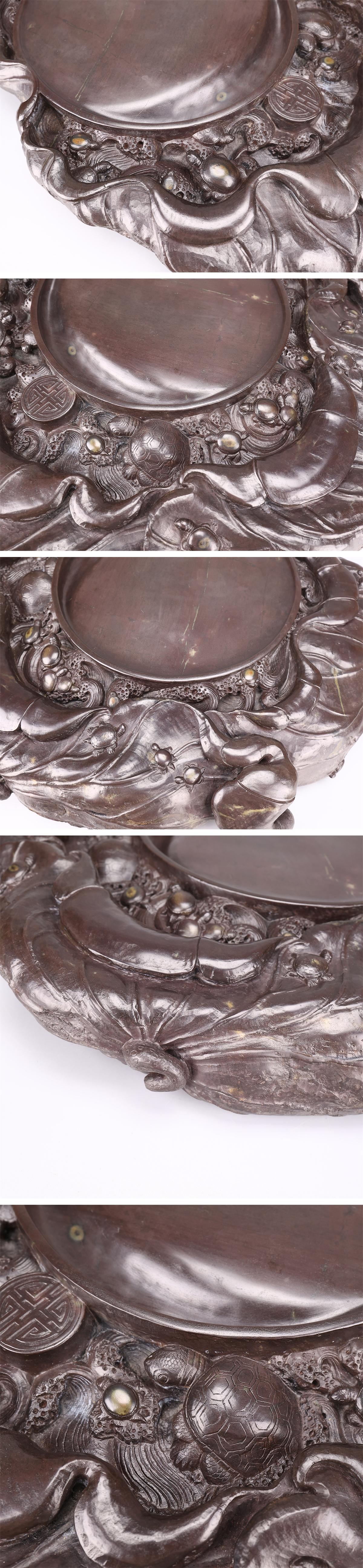 【吉】BB029 唐物 天然端渓石製 【中国麻子坑】 書道具 端渓硯 青眼十三亀硯 幅40×34㎝ 重10.56Kg/美品S! 收藏