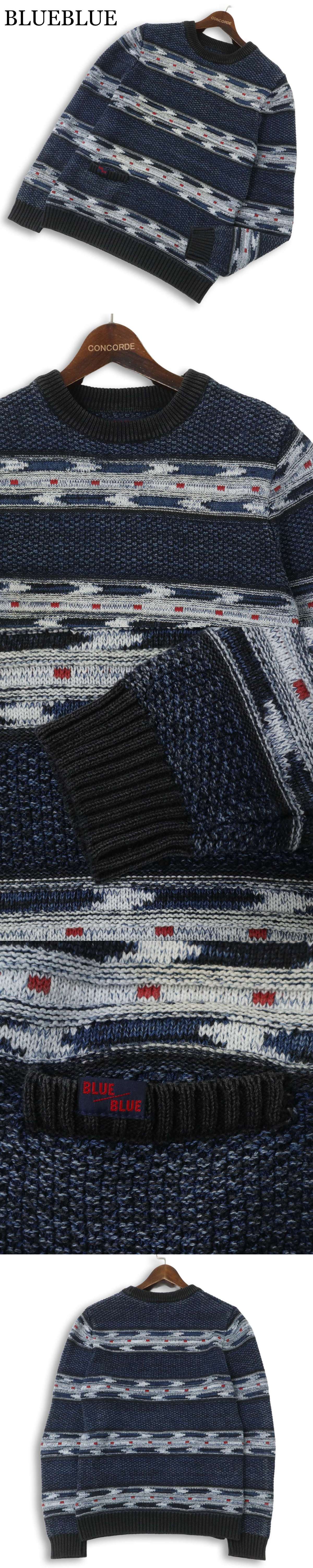 BLUEBLUE ブルーブルー ハリウッドランチマーケット ボーダー★ インディゴ ダイ コットン ニット セーター Sz.1 メンズ 收藏