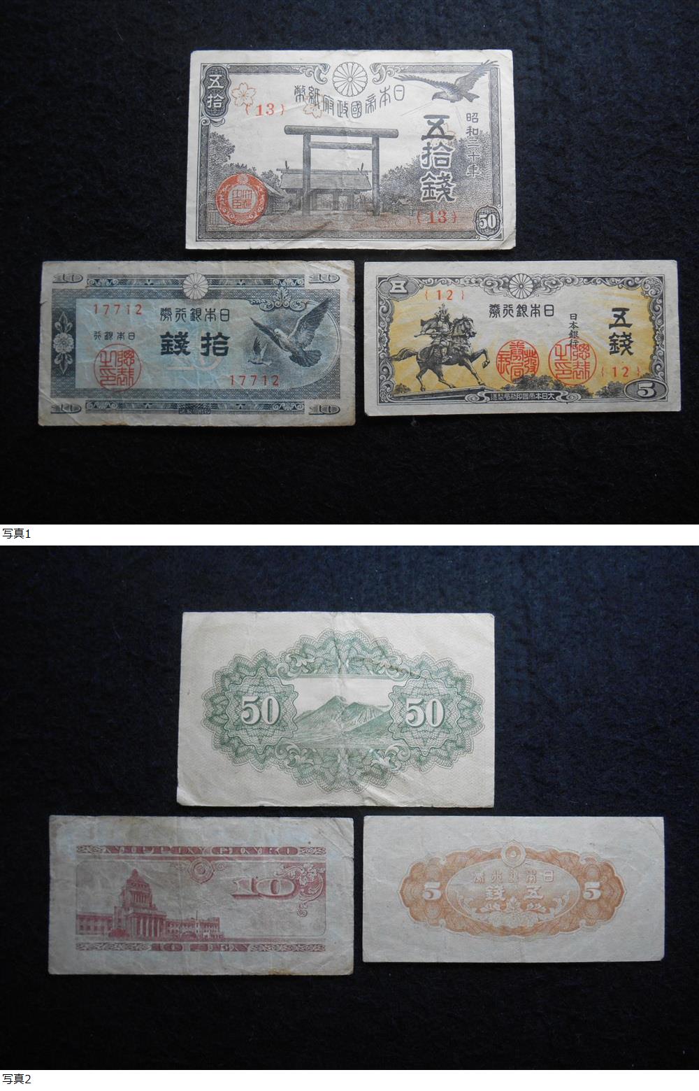 | 旧紙幣 靖国50銭 など 3枚 B-0407 |
