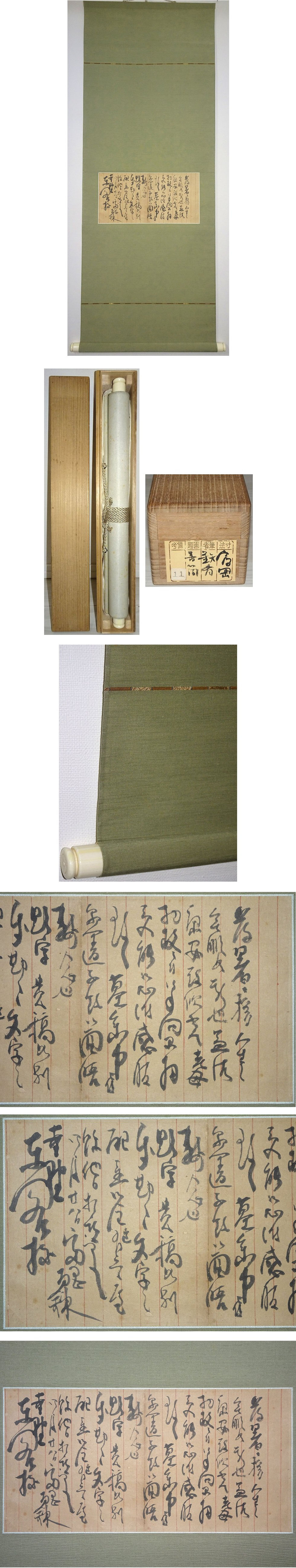 紙本 撥軸 真筆保証(真作) 裂表装(筋金襴) ウブ幅 桐箱入 中身寸法16.5×33.3 少しヤケ等あり 幅自体しっかりしています よろしくお願い致します
