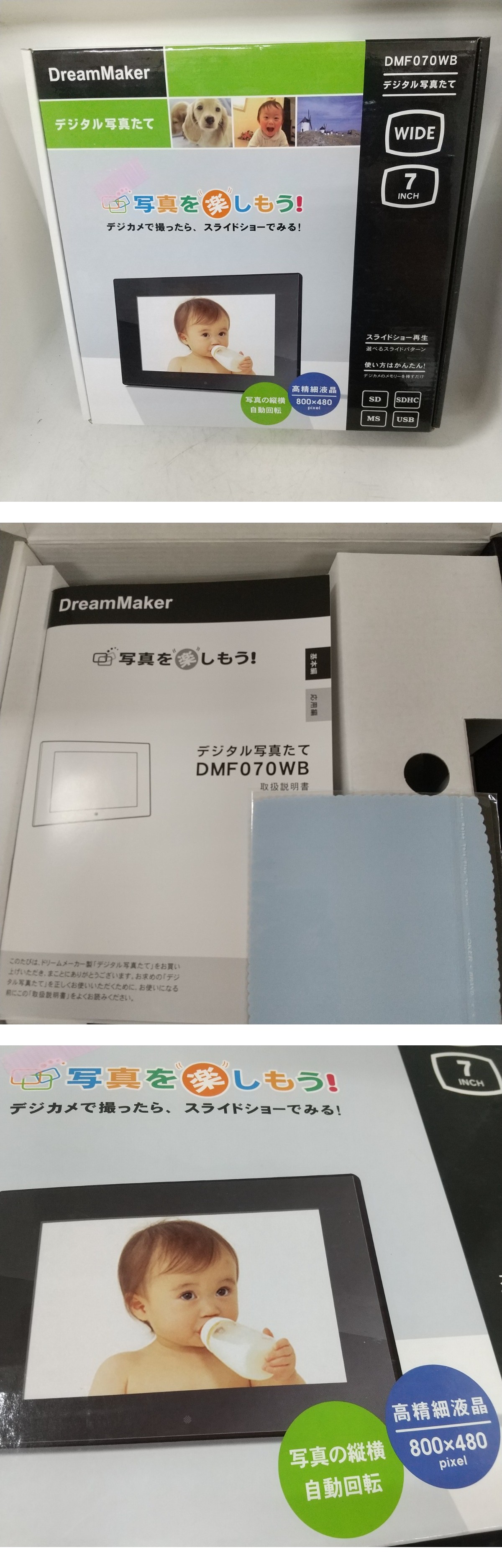 | ※必ず最後までお読みください。 Please be sure to read to the end. 一定要到最后※ | 商品概要 | -95数あるオークションの中からこちらの商品をご覧頂きまして誠にありがとうございます! ※商品説明と注意事項を必ず全てお読み頂いた後にご入札下さい※ 引き続き 安心できる気持ちの良いお取引を心掛けてまいりますのでどうぞ 宜しくお願い致します! 色んなジャンルの商品を多数出品しておりますので、こちらをクリックしてご覧ください!! 東京都公安委員会 古物商許可 第307781505147号 ◎未使用/保管品◎DreamMaker ドリームメーカー デジタル写真たて DMF070WB 7インチ液晶 ブラック 即発送 ※最下部にも写真掲載中なので必ずご覧下さい。 【商品概要】 ドリームメーカー デジタル写真たて DMF070WBになります。 美しい佇まいを実現する、わずか12mm(最薄部)のスタイリッシュなボディ。 液晶画面とフレームを1枚のアクリルで覆う「フラッシュサーフェイスデザイン」美しく撮って、美しく飾る。 洗練のデザインを追求したデジタル写真たてです。 お探しの方、是非この機会にいかがでしょう(^_-)-☆♪ 外形寸法:206×135×26(mm) 公式サイト⇒こちらをクリックしてご覧ください!! 【状 態】 写真をよくご確認お願い致します。外装ランク:(N) 【詳細・備考】 ※長期保管による汚れがみられます。 写真に写っているものが全てになります。 また、タイトルや本文と写真が異なる場合は写真を正とします。 保管品なので状態判断には個人差があることを予めご了承の上 写真にてご確認ご判断をお願い致します。 譲り受けたお品で当方は専門店ではないので詳細の質問にはお答えできかねます。 また簡単な検品は行っていますが、譲り受けた商品のため欠品等見落としがある場合がございますので保証等はしかねます。 ※返品不可が入札条件となります。 ※中古現状とは動作未確認のジャンク品になります。 ※通電確認とは電源に繋げてONOFFの確認のみになります。 ※バッテリーや電池は消耗品なので経年劣化がある場合もあることをご了承お願い致します。 ※保管品に関しては未使用でも新品ではございませんので、保管期間による劣化等ある場合もございますので、新品をお求めの方はご入札をお控えください。 ※ジャンク品ではなくても中古品の性質上、配送途中や到着後に万が一不備不良が起きうる場合もございますがも保証はできかねますので、返金返品不可をご了承の上ご入札お願い致します。 ※未開封品に関しては中の状態が不明な為、不具合等ございましたらメーカーとご相談お願い致します。保証対象外とさせて頂きますのでこちらでは対応いたしません。 尚、実際の色とパソコンや携帯の画面を通じた色彩は異なる場合もございますのでお気をつけ下さい。 =外観ランク表記= (N)長期保管/未使用品(新品ではございません) (S)数回程度使用の美品 (A)多少の傷、若干の使用感がありますが程度良好の美品 (B)一般的な使用感あります。 (C)汚れ、使用感を感じるがまだまだ使える品物 (D)汚れ、使用感等が見受けられる難有品 (E)ジャンク品 ※大体の目安としてお考え下さい。 新品に近いものをご希望の方や神経質な方のご入札はご遠慮下さい。 ご入札頂いた時点で本文説明文に了承を頂き、商品にご納得して頂いたと当方で判断させて頂きますので 【ノークレーム・ノーリターンがご入札の条件となります】 また、弊社のオークションでは いろんなジャンルで多数出品しておりますので是非ご覧ください(^_-)-〇 ![]() ▶入札の取り消しは受け付けておりません。 落札後の質問やキャンセルも受け付けておりません。 尚、営業時間が9-18時となっておりますのでオークション終了間際や質問内容によっては返答できない場合がございます。 ジャンク商品に関してはいかなる場合も返品返金の対応はできかねます。 落札後のサイズ違いやイメージ違い等のキャンセル、クレーム、返品等はお受けできませんので予めご了承ください。 ご入札の方につきまして、当方にて評価が著しく悪いと判断した場合は、トラブル防止の観点からご入札を取り消させていただく場合がございますので予めご了承ください。 新規IDの方や、いたずら入札と判断した場合、入札削除させていただく場合がございますので、新規の方は質問欄にて購入意思を示してからのご入札をお願い致します。 ※の障害等で入札が不適切に成立した場合は落札された場合でも削除対象になりますことを予めご了承お願い致します。 取り置きは可能ですが物や金額によってはすぐに決済をお願いする場合がございます。 当方大量の商品を管理している為、複数落札の同梱ご希望の方は、「まとめて取引」の依頼を必ず行ってください。 ◆連絡方法◆ ▶当方連絡事項は全て取引ナビを使用しております。 ご連絡先、ご要望等は必ず「取引ナビ」にご入力お願い致します。※ご入札前の場合はdiamonds100ct@yahoo.co.jpまでお願い致します。 ⇩⇩下記の注意事項を必ずお読み下さい。
