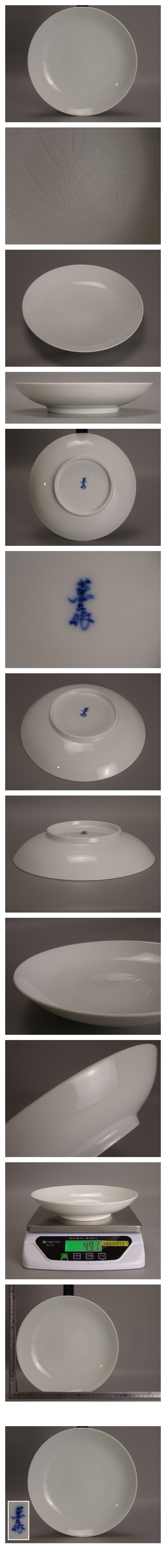人間国宝 井上萬二 本人作 白磁 笹 彫文 皿 額皿 飾皿 陶額 七寸皿 有田焼 【伊万里焼 料理屋 料亭 うつわ 茶懐石道具】 r8 0109 13 收藏