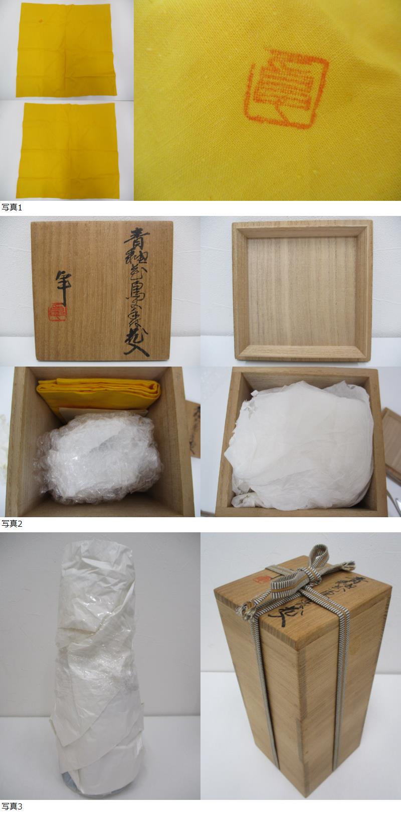 | 商品説明 | 譲渡品の為、詳細不明です。 細かい傷や汚れがあります。 底が白いので底の汚れは分かりやすいです。 内部の状態は分かりかねます。 写真8枚目のように底のフチに 工程上のものか、そもそもこういうものか分かりませんが、 欠けているようにみえます。 説明書にシミ汚れやシワがあります。 ウコン布にも汚れがあります。 写真のように元の薄紙が巻いてあった状態から +プチプチで巻いて収納しております。 予めご了承ください。 共箱が縦横奥行合わせて約57cmになり、 60cmではキツキツになるかと思いますので、 発送はゆうパック80cmサイズとなります。 (間に緩衝材をお入れします) 共箱に傷みがあります。 何卒ご理解お願い致します。 自宅保管の汚れなどがございます。 詳細は写真でご覧ください。 当方に専門知識が無い為 専門的なことはわかりかねます。 中古品ということをご理解のうえ、 写真にてご判断頂ける方、 ご理解いただける方のみご入札をお願いします。 神経質な方や美・完働品をお求めの方は、 ご入札をお控え下さいますよう、よろしくお願い致します。 | |