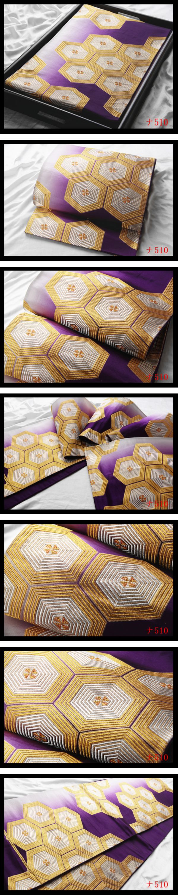 【ナ510】西陣美品 振袖可 亀甲紋 葡萄色地 気品豊かに 正絹純金糸六通高級美術袋帯 検★着物名古屋帯和装小物帯締め 收藏