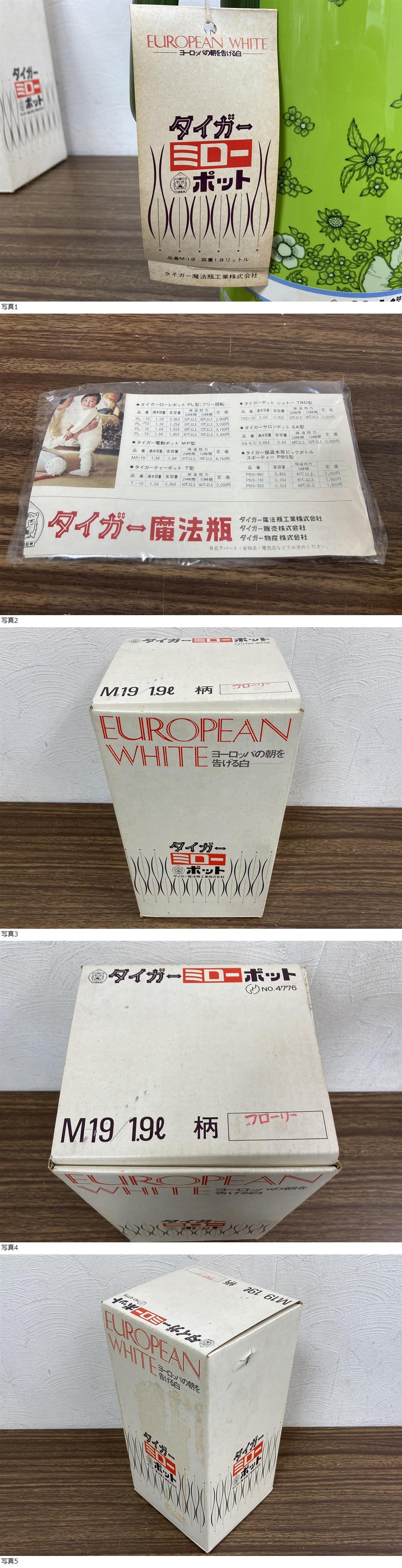 ☆21401-c 未使用 保管品 タイガー/TIGER ミローポット ヨーロッパの朝を告げる白 M19 1.9L フローリー柄 昭和レトロ デッドストック☆ 收藏