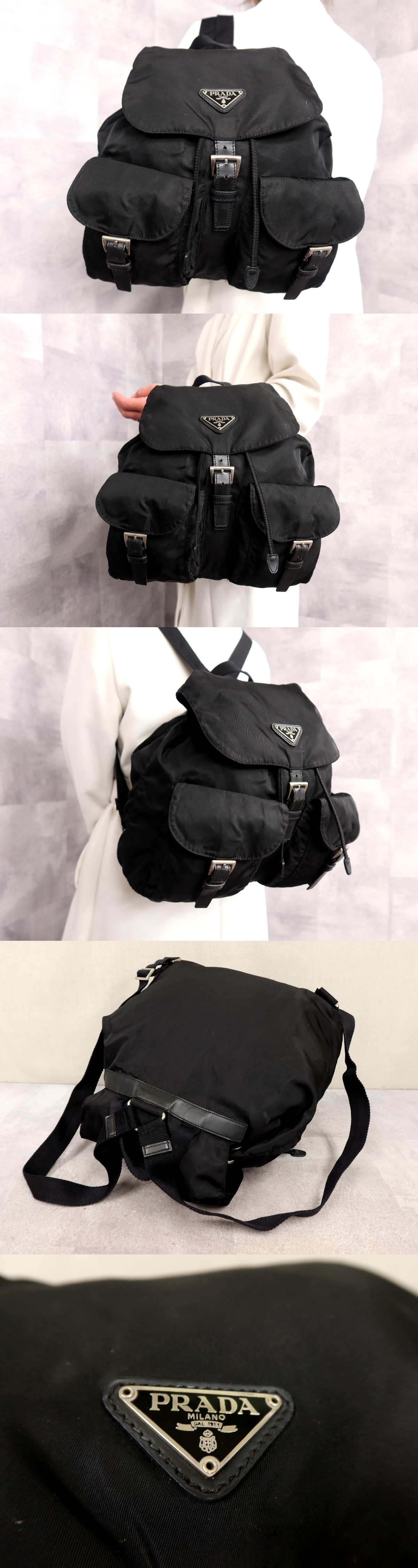 ●超美品●プラダ●三角ロゴプレート●ポコノ ナイロン カーフ レザー 本革●リュックサック●黒●SV金具●ヴィンテージ●B5 収納●Js64186 收藏