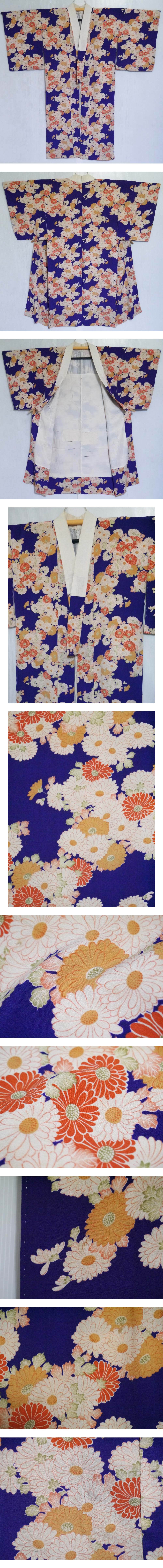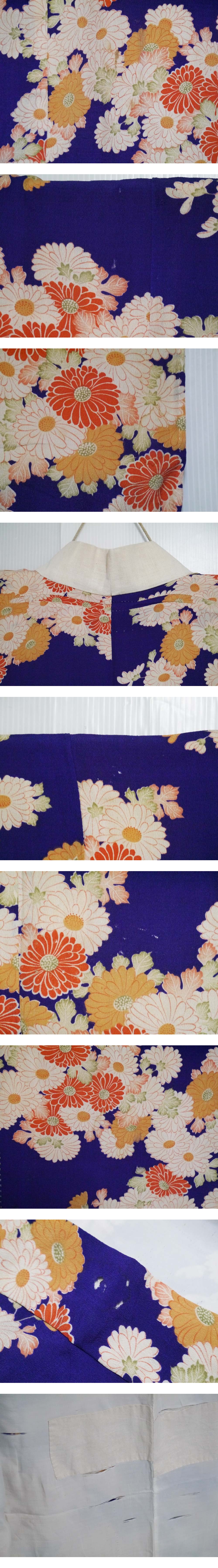 【KIRUKIRU】アンティーク 長襦袢 大正ロマン 青紫 菊尽くし 花柄 古布 古裂 リメイク 材料 生地 手芸 ハンドメイド 收藏
