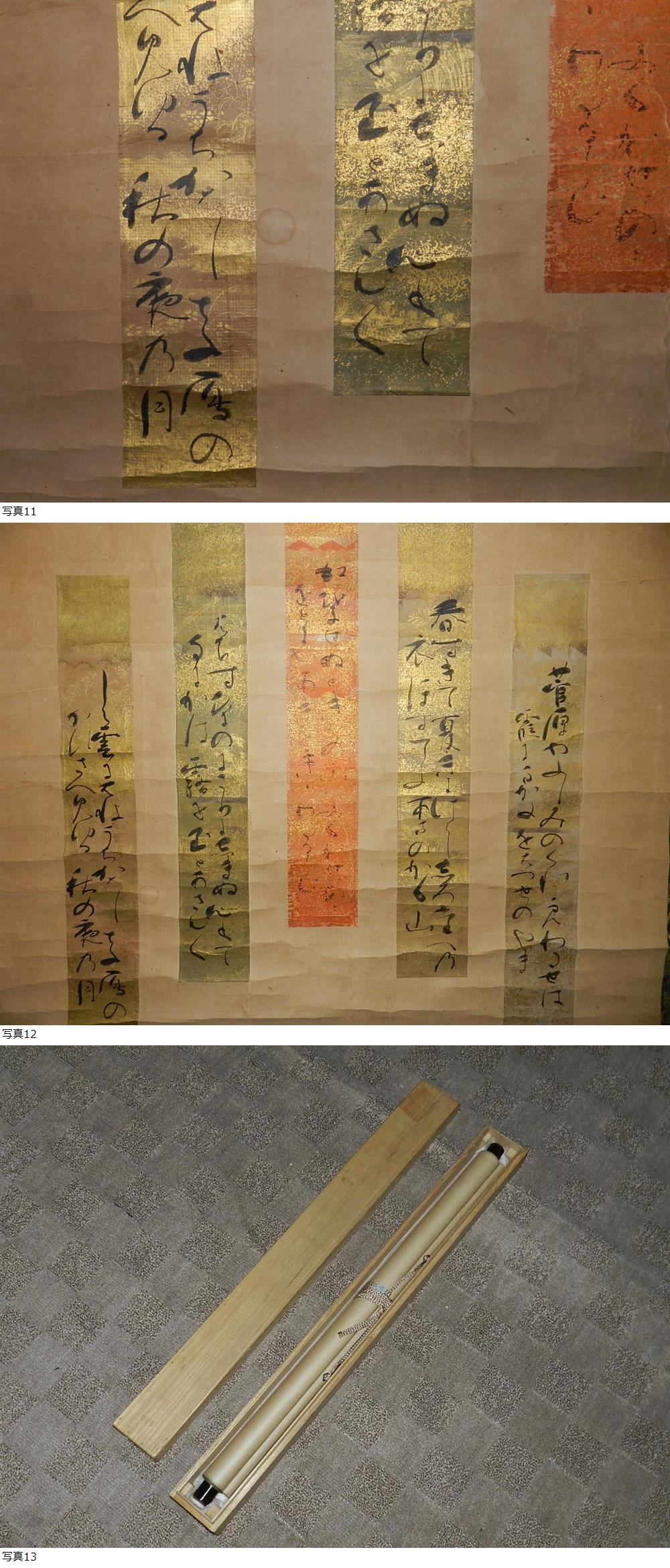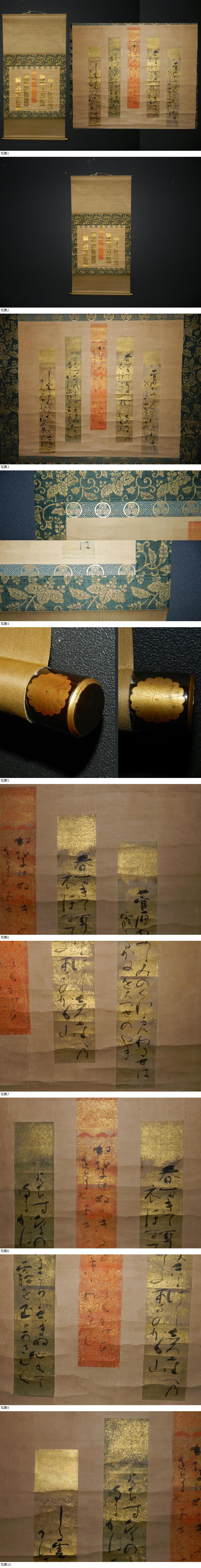 | KS2 茶掛 松平不昧公 御筆 定家流 [ 短冊5枚 葵紋掛軸 』 箱付 |
