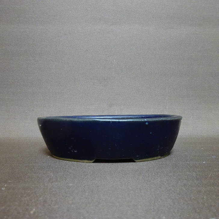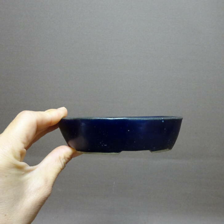 【中古】盆栽鉢 司峰 小型 長辺 約 12cm 楕円鉢 釉薬 現品 中古鉢 收藏